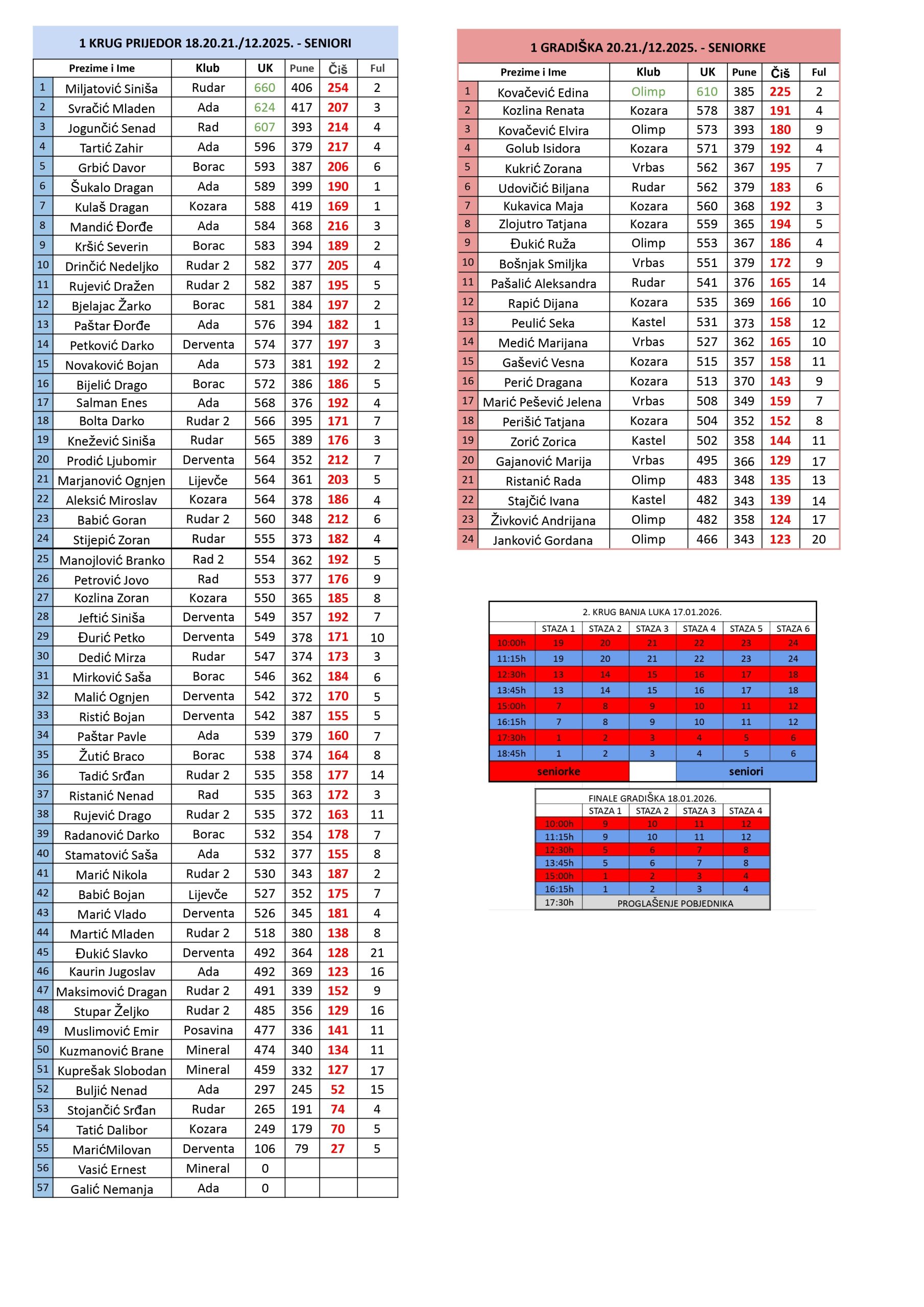 13.12.2025.Kvalifikacije za Pojedinačno Prvenstvo Republike počinju idući vikend za seniore u Prijedoru a u Gradišci za seniorke. Sudijska organizacija Bosne…