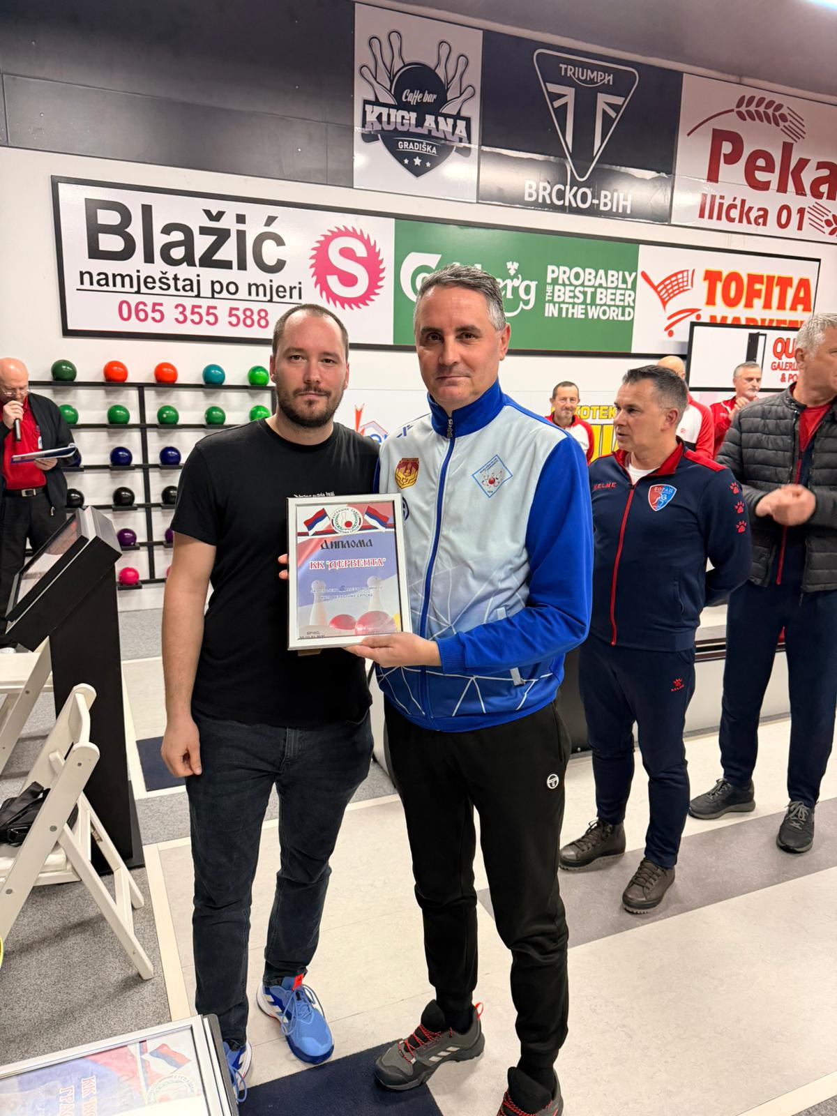 Plakete za afirmaciju kuglaškog sporta – KK Rad Brčko i KK Rudar Prijedor i posthumna plaketa je dodjeljena nedavno preminulom Mići Perduhu.
